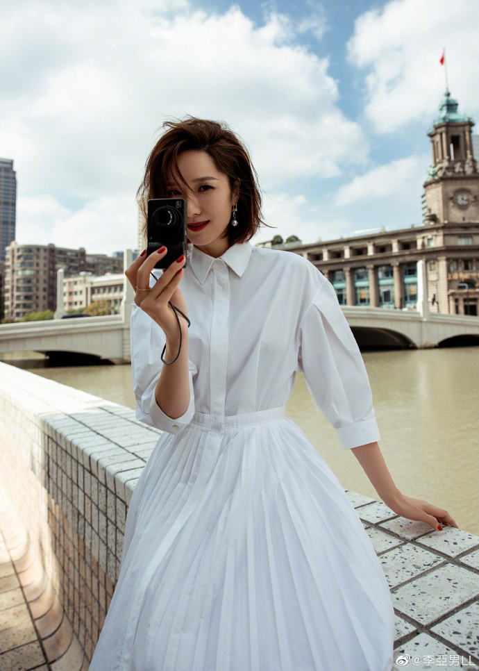 李亚男江边秋意写真释出 穿白色连衣裙头发飘逸大气优雅(3)