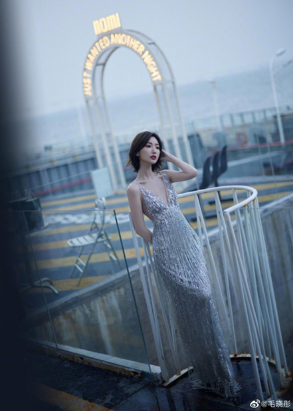 毛晓彤晒银色礼裙美照 流苏亮片包裹完美身形性感优雅(4)