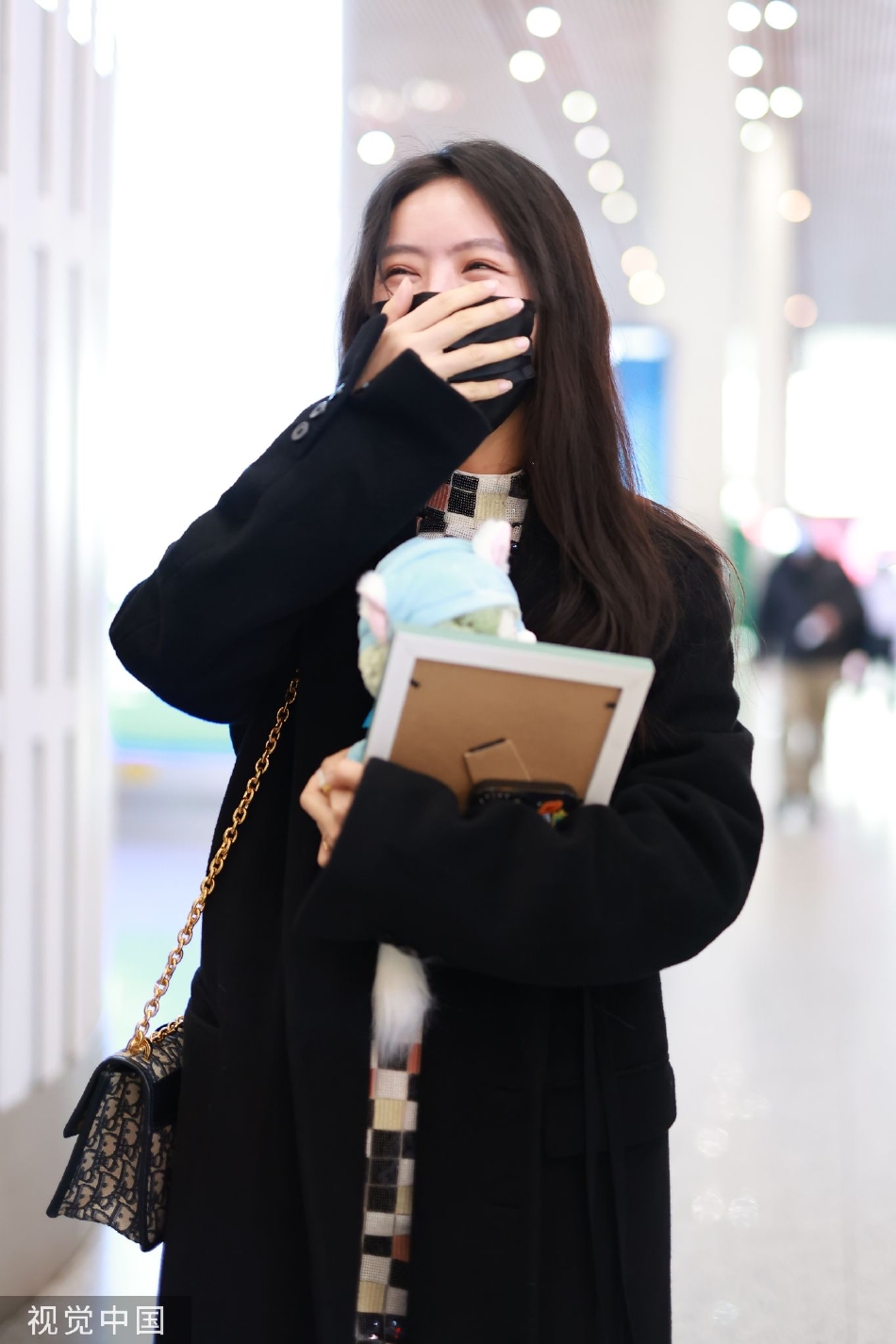(原标题:蔡文静黑色长大衣造型现身机场 温柔披发气质温柔大方)
