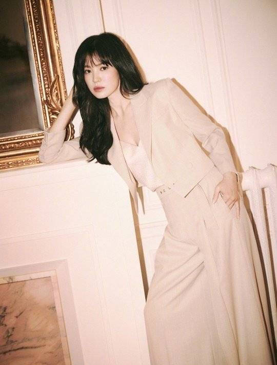 宋慧乔小香风穿搭精致干练 长卷发垂落在肩气质温柔(2)