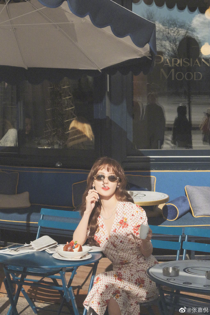 张嘉倪穿法式碎花短裙精致摆拍 演绎回眸一笑百媚生(3)