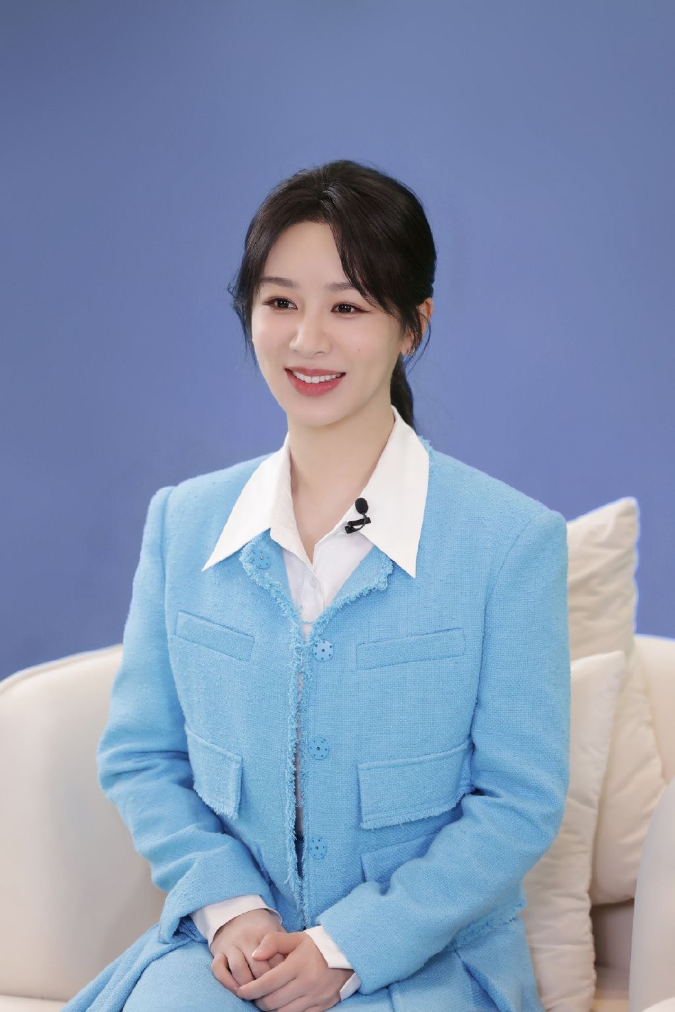 杨紫穿蓝色小香风套装 扎低马尾温柔大方显淑女范(5)