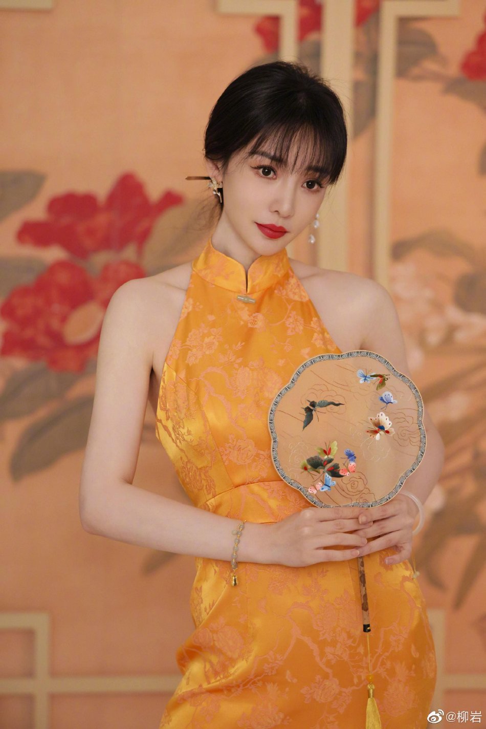 柳岩晒露背旗袍装执扇好优雅 六一祝大小朋友向阳生长(2)