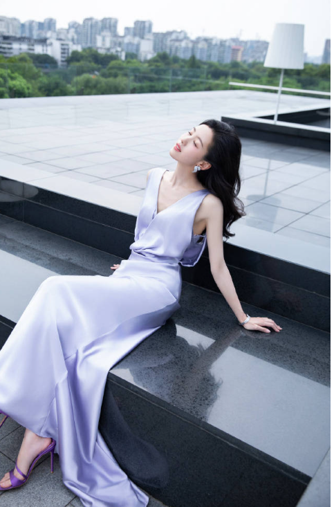 陈都灵一袭紫色v领鱼尾长裙 笑容明媚气质知性大方(2)