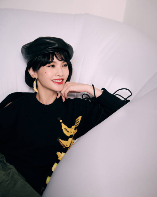 杨丞琳戴贝雷帽穿搭酷飒 对镜头嘟嘴比心甜度满分(3)