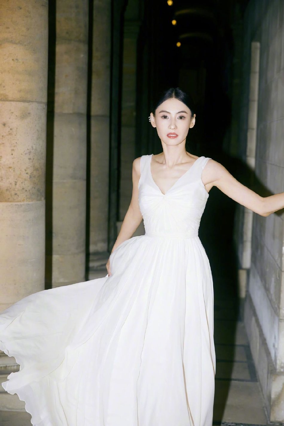 张柏芝白色吊带裙简约大气 优雅松弛美得毫不费力(3)