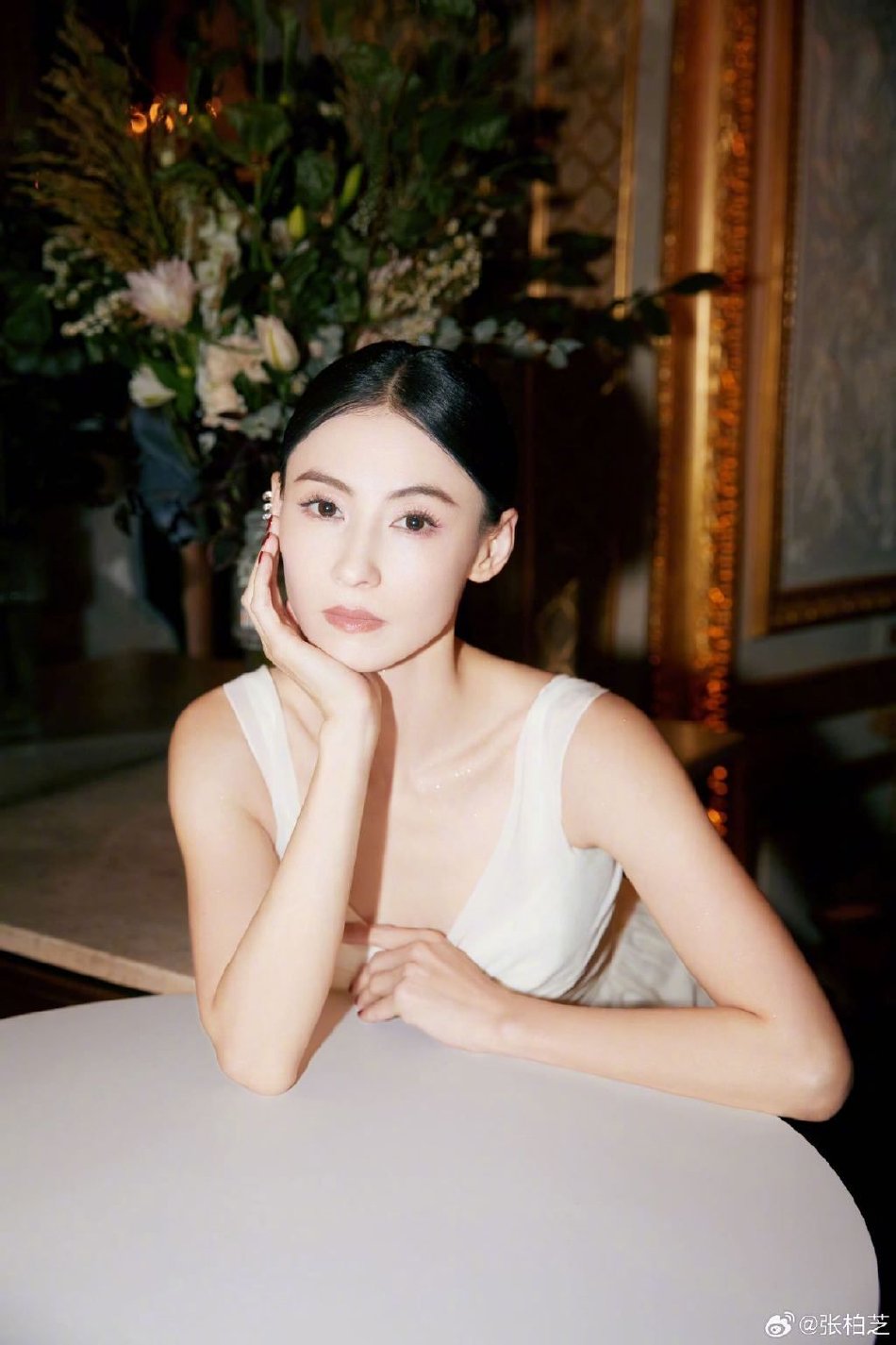 张柏芝白色吊带裙简约大气 优雅松弛美得毫不费力(4)