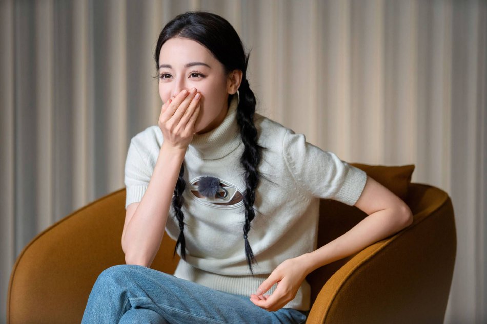 (原标题:迪丽热巴扎双麻花辫精致可爱 穿白色针织衫好养眼)