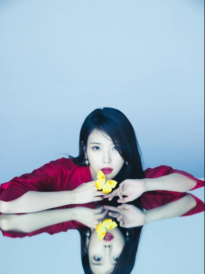 (原标题:IU一抹红唇妖娆迷人 穿红色丝绸质衬衫皮肤白皙)