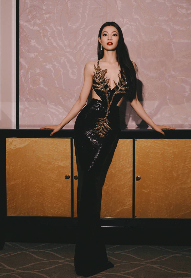 钟楚曦身材婀娜锁骨精致 着黑色露背裙风情万种(3)