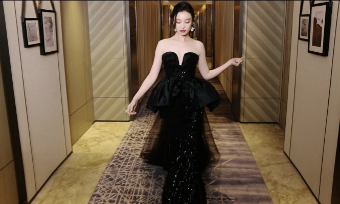 倪妮穿黑色礼裙变身黑天鹅 托腮甜笑温柔俏皮(6)