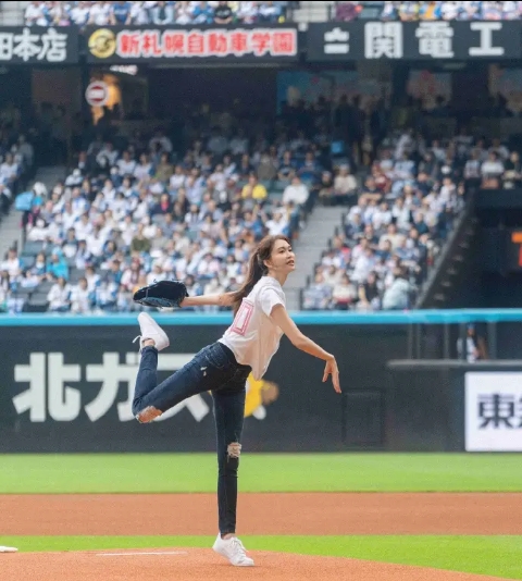 林志玲担任棒球比赛开球手 白T恤配牛仔裤又美又飒(7)