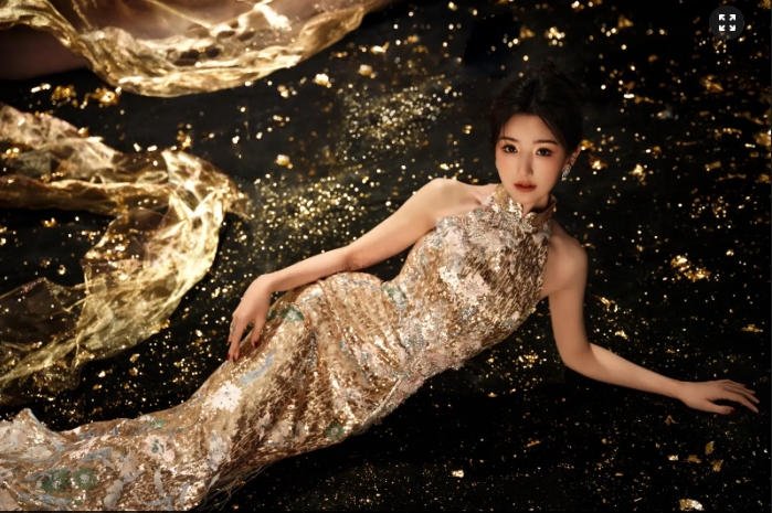 毛晓彤穿鎏金挂脖裙璀璨闪耀 大秀天鹅颈华丽夺目(8)