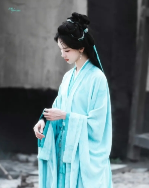 陈都灵身穿蓝绿色古装温婉清新 两缕秀发搭身前古韵优雅(4)