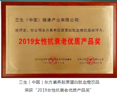 本次论坛旨在探讨在当今社会经济发展新形势下,女性消费市场快速崛起,行业品牌如何紧随女性市场消费潮流,从而带动各企业在健康、美容、娱乐、休闲等多方面共同发力,进一步推动“她经济”和行业品牌升级。 积极关注和响应女性消费经济发展的新时代需求,三生(中国)近年来不断加大技术研发投入力度,整合全球优质技术资源,不断开拓进取,超越自我,为女性消费市场提供优质安全的产品。在本次论坛上的表彰环节中,三生(中国)作为健康行业的先行者和成功实践者,通过实践创新助力女性消费市场建设,旗下的东方素养胶原蛋白肽血橙饮品荣获“2019女性抗衰老优质产品奖”,获得行业认可。东方素养胶原蛋白肽血橙饮品以其创新的双肽设计,开启胶原蛋白肽2.0时代!同时,产品还富含4种天然水果精华防护肌肤,2种益生元促进益生菌生长,内调养颜 ,帮助女性锁住青春美丽!