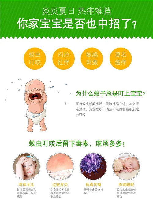 【直报网北京6月19日讯】(隆力奇)夏天到了,胖嘟嘟又爱出汗的小宝贝成了蚊虫的目标。孩子抓挠不注意,更容易导致发炎感染!宝宝肌肤娇嫩,处理蚊虫叮咬需要更加温和舒适的配方。 隆力奇畅销儿童蛇胆花露,专门筛选亲肤成分,添加蛇胆及众多草本植物精华,安全天然,快速消除蚊子、蜜蜂、蚂蚁等昆虫叮咬带来的痛痒、红肿等不适。在宝宝洗澡水中滴几滴,清凉止痒,温和祛痱,预防蚊虫。有效抑制及预防蚊虫叮咬后的细菌传播与感染,守护宝贝健康。 ![]() 隆力奇蛇胆儿童草本花露 ![]() 隆力奇儿童蛇胆祛痱&止痒花露 宝宝被蚊虫叮咬后,3种止痒的方法 宝宝蚊虫叮咬后,一般会引起叮咬部位的肿胀。用口水涂抹被叮咬处、用西瓜皮擦拭这些方法并不能缓解宝宝被蚊虫叮咬后的痒,正确的方法是: 1.先用碱性肥皂清洗,防止起包。 2.若已经起包了,可以每隔2小时使用冷敷方式消肿止痒,也可以用炉甘石洗剂给宝宝涂抹止痒。