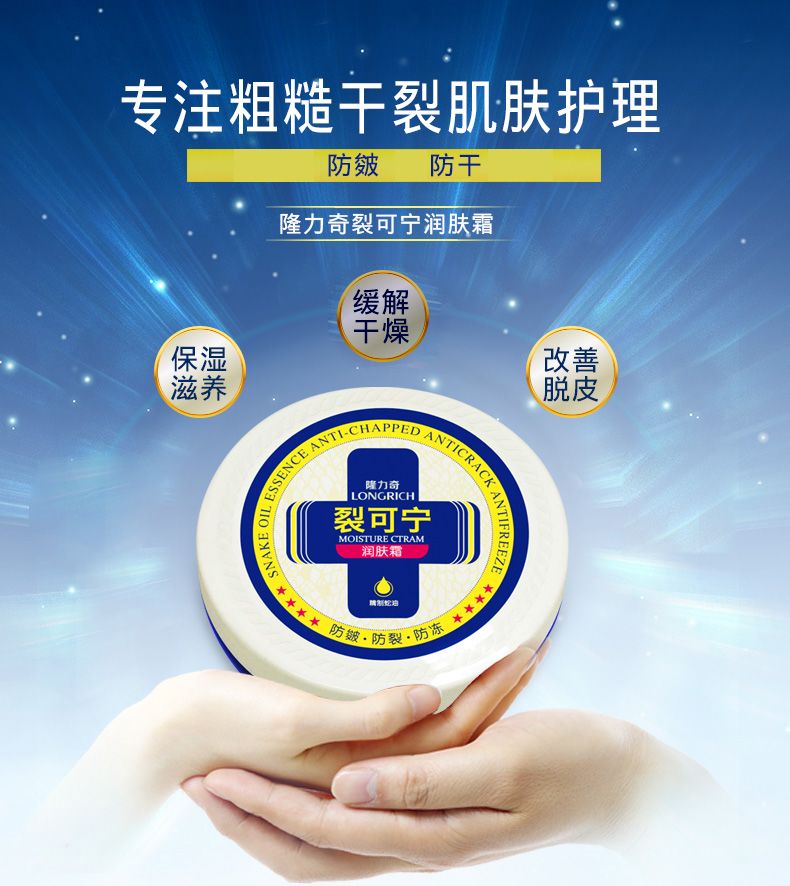 你知道吗?脚裂是一种常见皮肤病,通常是由皮肤干燥导致的。它不仅疼痛,还容易造成感染。别再犹豫,隆力奇护足霜赶紧安排上! 01 隆力奇裂可宁