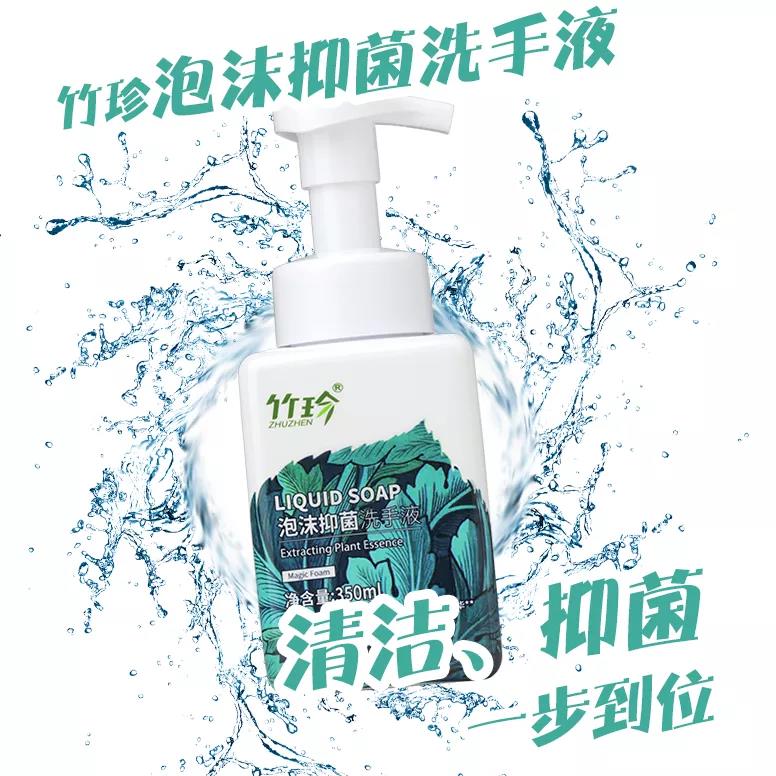 1. 高效抑菌99.9% 实验结果表明,产品对大肠杆菌、金黄色葡萄球菌、白色念珠菌作用2分钟的抑菌率均值均大于99.9%。 2. 温和护手 伞花烃(可用于口腔产品)+竹叶黄酮+洋甘菊提取物,温和抑菌; 高亲和性透明质酸钠,保湿滋润; 有效洁净,温柔呵护您的双手。 3. 魔术泡沫泵头 一泵按压,泡沫细腻绵密,让洗手成为一种享受。 竹珍浓缩抑菌清洁剂