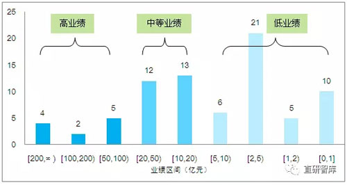 2016年业绩超过200亿元的企业有4家,21家企业在2-5亿元之间,10家企业业绩不足一亿元。14%的企业位于高业绩区间,32%的企业位于中等业绩区间,54%的企业位于低业绩区间。 图表 4 2016年直销企业业绩区间分布 ![]() (欲了解更多业绩分析内容,请联系世界直销研究院) 责任编辑:佟佟 解读新闻热点、呈现敏感事件、更多独家分析,尽在以下微信公号,扫描二维码免费阅读。