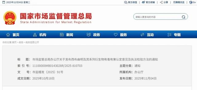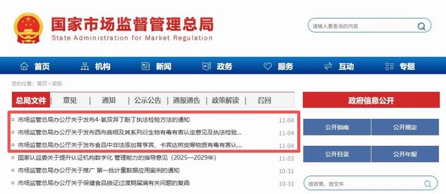 【直报网北京11月5日讯】(庶正康讯)政府干预的出发点是纠正市场失灵!我国营养健康市场长期徘徊在失灵临界点两侧,因此严格监管是优化营商环境的必要之举! 11月4日,国家市场监督管理总局批量发布关于非法添加非食用物质系有毒有害认定意见及执法检验方法的通知。 ![]() 据庶正康讯了解,本次发布的内容包括有: 宣称“减肥”功能食品非法添加有毒有害物4-氯双异丁酚丁执法检验方法; ![]() 宣称“减肥”功能食品非法添加非食用物质西布曲明新型衍生物认定意见及执法检验方法; ![]() 宣称“壮阳”功能非食用物质育亨宾及其系列衍生物或含有该类化合物的卡宾达树皮等物质有毒有害认定意见。 ![]() 今年4月,国务院食安委《中共中央办公厅 国务院办公厅关于进一步强化食品安全全链条监管的意见》正式印发,标志着我国食品安全治理迈入了统筹全链条、全周期、全要素的新阶段。市场监管总局党组书记、局长罗文指出,强化全链条监管是适应食品安全新形势的迫切需要,《意见》以全链条监管为切入点,将“四个最严”要求贯穿于食品生产、流通、储存、消费各环节,推动食品安全治理从事后处置向事前预防延伸、从局部管控向系统治理升级。