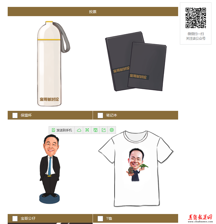 其实,连我都不知道。这个决定权,我打算交给大家。 这两年有个热词叫“用户思维”,究竟什么是用户思维?是互联网时代的推广噱头,还是真正得人心的商业实践?多说不如实干。今天就让我们来做一次全新的尝试,请大家参与到宝哥相对论纪念品开发的全过程中来。 第一步,当然是选纪念品。送什么,你说了算! 怎样获得纪念品? 1. 凡参加宝哥相对论“一起写本书”活动并入围的小伙伴都可以获得一份纪念品(参与方式:6月3日-16日,点击“宝哥相对论”微信菜单中的一周年活动——“一起写本书”,或者回复关键词:大事) 2.在参加纪念品投票的小伙伴中将随机抽出100位,每人赠送一份纪念品。 什么时候能拿到纪念品? 投票于6月16日结束。6月17日开始,我们将马上投入到纪念品的开发制作中。纪念品的开发进度和幕后故事,将通过“宝哥相对论”告诉小伙伴们,真正让大家一起参与见证整个过程。请耐心等待哦! 宝哥送什么,由你说了算 投票时间:6月10日—16日 每人限选2件 微信扫一扫 关注该公众号