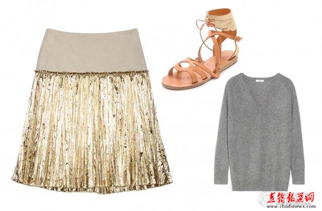 “这条裙子让我心跳加速当我第一次看到它。对我来说,金色是中性的,可以配上黑色、白色、海军蓝和灰色上衣,直到天气温暖到足以穿它配上我的金褐色古希腊凉鞋。”