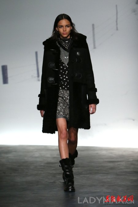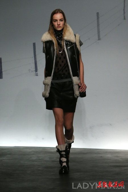 Coach 2015秋冬系列,创意总监Stuart Vevers创造的年轻酷女孩们是“无所不在,又遥处远方”。剪羊毛用来拼接、修补和粉饰那些机车外套,短夹克,