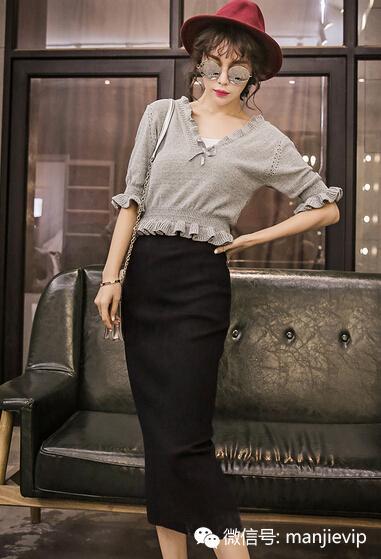 设计上乖巧可爱又甜美的一款,V领小波浪边非常显瘦哦,还可以拉伸当做一字领穿,可以不经意的露一下小香肩哟,下摆的边边是卷翘的木耳边 外穿内搭都很赞,让你该细的地方细 该大的地方~额~~ 看起来大~哈哈哈。
