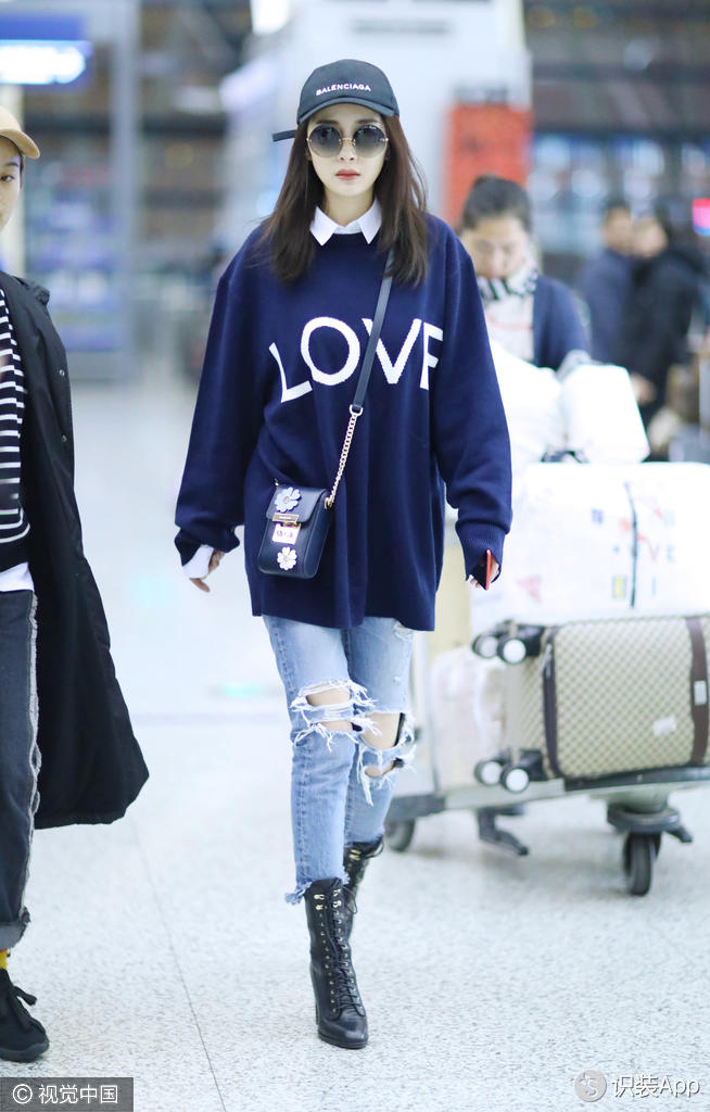 【直报网北京2月16日讯】(凤凰网时尚)2月14日,情人节依旧忙绿的杨幂独自现身机场。当天,她头戴Balenciaga黑色棒球帽,身穿Michael Kors “Love”logo毛衣,搭配破洞牛仔裤秀出春装潮搭,所背的花朵装饰迷你相机包也是清新甜美,潮味十足。