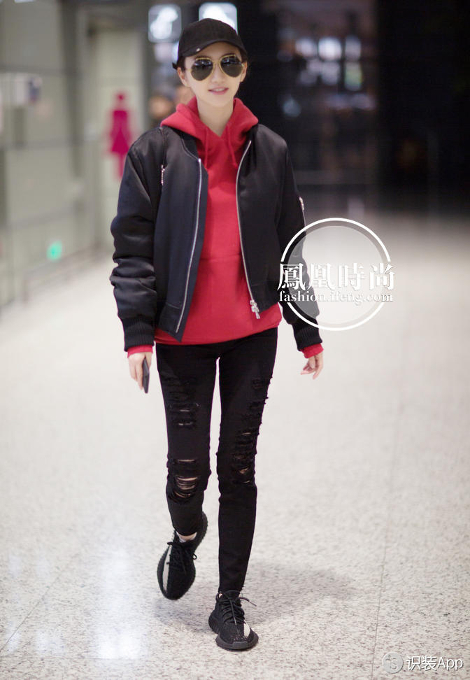 (原标题:连帽卫衣+飞行员夹克+鸭舌帽 大甜甜走帅气路线太酷了)