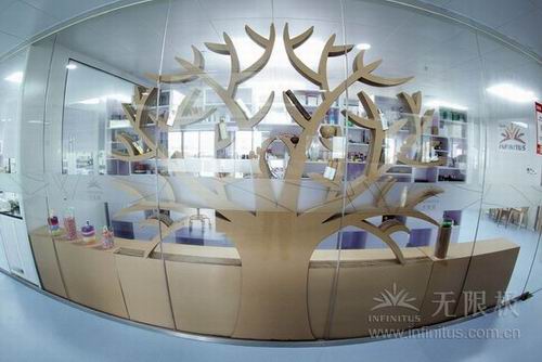 再猜猜这是什么?对!是各种颜色的牙膏盖子,拼出了无限极的LOGO图案,挂在墙上十分醒目。 |