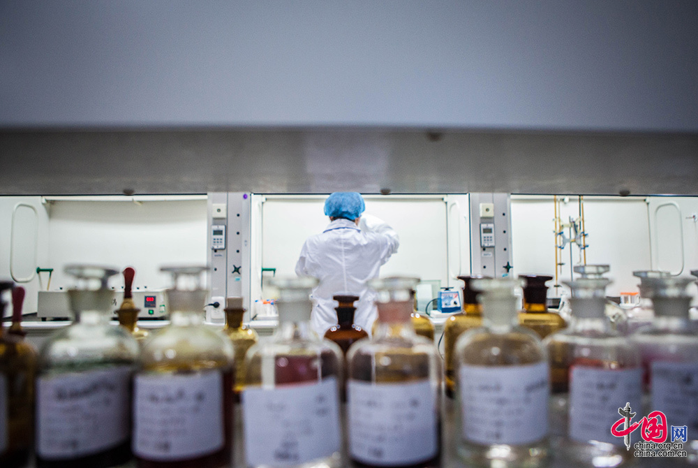 12月7日,由新华社、人民日报海外版、中国经济周刊、中新社、经济日报等10家中央级媒体组成的媒体团走进天狮国际健康产业园。图为检测中心工作人员正在对产品进行检测。中国网记者 伦晓璇 摄