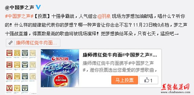 【直报网11月18日讯】(新华娱乐)继上周主题:“伴我成长的歌声”,本周《中国梦之声》再为梦想发声。刚诞生的十强学员:郑兴琦、Emily、马海生、朱兴东、伊尔盼、唐宝、郑湫泓、栗锦、姚伟涛、赖仪雯又将接受下一轮挑战。据中国梦之声官方微博透露,人气组合羽•泉已确认加盟本周梦之声,势必给梦之声平添一道亮丽风景。 组合羽•泉确认加盟梦之声 昨日,梦之声官方微博发起选歌投票:“人气组合@羽泉现场为梦想加油献唱,唱什么?听你的!什么的旋律能代表你的梦想?哪一种声音让你念念不忘?11月23日晚9点档,梦之声十强战直播,得票数最高的歌曲将被现场演绎!”被选中用来投票的歌包括《最美》、《奔跑》、《深呼吸》、《不离不弃》、《一路有你》等15首羽•泉耳熟能详的的曲目。致电东方卫视,梦之声节目组回应:已确认邀请羽•泉加盟。深受不同年龄层次人喜欢的羽•泉是中国大陆知名度非常高的男声音乐组合之一。去年参加“我是歌手”,摘得冠军。在选歌、舞台经验方面,羽•泉都是梦之声学员们当之无愧的前辈。 本周10进8 再掀激烈对战 上周梦之声凭人气排名决定选手出场顺序,伊尔盼对战萨吉、郑湫泓对战赖仪雯、Emily对战唐宝、栗锦对战朱兴东、姚伟涛对战马海生、郑兴琦对战阎奕格,6场高潮迭起的对战将现场引向一波又一波的高潮。最终,萨吉和阎奕格因现场人气不敌唐宝、郑湫泓、姚伟涛、栗锦等四位学员意外遭淘汰。 本周,又将迎来十分残酷与激烈的对战。10强学员争夺8强席位。导师想保住的萨吉因人气不敌其他选手而遗憾离场,不知本周导师是否会增持更高的投票权,目前还未得到确切消息。▲ (原标题:羽•泉确认加盟《中国梦之声》本周再掀“血战”) 责任编辑:梦涵