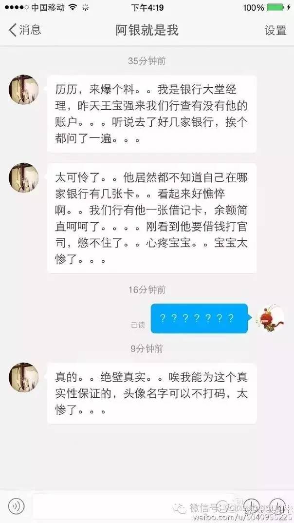 相信大家和我一样疑惑,宝宝你的钱呢?难道真像新闻里说的要做财产鉴定所以资产都被冻结取不了吗?不是!随中小编的深入挖掘,发现事实远比想想的更让人震惊。 让我们先看看宝宝是如何借到这笔立案费的吧 微博上一则最新的爆料说,王宝强昨天去银行,到好几个银行挨个问有没有自己的账户,因为他不知道自己有几张卡,每张卡上有多少钱……