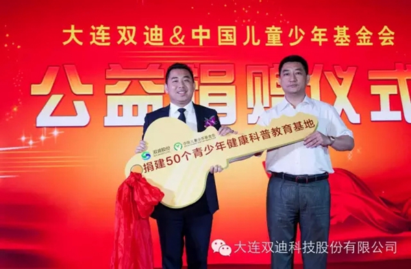 副董事长林俊(左)代表公司向中国儿童少年基金会捐赠