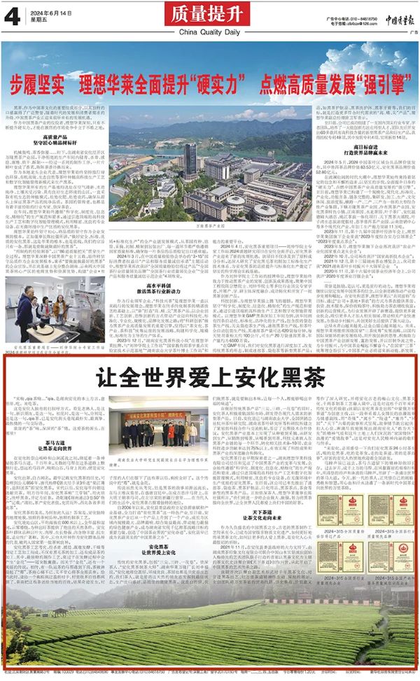 ![]() 【直报网北京6月17日讯】(中国质量报)“来呦,qia茶呦...”qia,是湖南安化的本土方言,意思里,吃。来吃茶。 这是安化人独有的打招呼方式。看见老熟人,是这一句,新识朋友,是这一句。初见时,是这一句,分别是,还是这一句,qia茶,已是安化街头巷尾最朴实、最真挚、最热情的一句交际语。 浓浓的“茶”味,深深的“茶”情。这爱茶的源头,在哪里? 茶马古道 让黑茶走向世界 在安化的崇山峻岭和山涧溪流之间,绵延着一条神秘的茶马古道。千百年来,无数的马帮在这条道路上默默行走,悠远的马铃声,响彻山谷,马背上驼的,便是安化黑茶。 安化出茶,自古闻名。最早记载安化黑茶的历史,可追朔到公元856年,唐代杨烨《膳夫经手录》所述“渠江薄片,益阳团茶”即安化黑茶。宋代以后,安化每年向朝廷进献贡茶。明万历年间,安化黑茶称“兰芽锅”,用火培之,统呼黑茶,并定为官茶。清乾隆《湖南通志》卷50“物产”记载:“清初,茶产安化者佳,充贡而外,西北各省多用此茶”。 安化黑茶的美名,为何如此久远?答案是,安化独特的地理地貌,独特的茶树品种,独特的制茶工艺。 安化地处山区,平均海拔在600米以上,全年温和湿润,云雾缭绕,为种出好茶提供了绝佳的天然条件。安化茶叶群体品种以叶大、肉厚、生长势强、内含物丰富、抗生强,适应性广著称。其中,云台大叶种作为安化群体品种的代表,被列入国家第一批茶树良种。 安化黑茶工艺考究,经杀青、揉捻、渥堆发酵、干燥等特定工艺加工而成,不仅有黑毛茶的加工,还有成品茶的加工,其中,最独特的制作工艺,莫过于在发酵过程中会产生“金花”——冠突散囊菌。而关于“金花”,还有一个美丽的传说。相传,有一队运茶的马帮遇到下雨,茶被淋湿起了“霉”,茶商心痛不已,又不甘心将茶全部丢弃。恰巧此时,途径一个痢疾病泛滥的村子,村里很多百姓都病倒了,茶商把这些茶送给当地的百姓,结果奇迹发生,村子里的人们在服下了这些茶以后,痢疾全好了。这个传说中的“霉”,就是金花。 传说虽然无从考究,但是黑茶的故事却源远流长。在马王堆汉墓里,在盛唐宫廷中,在成吉思汗马背上,在大明王朝茶马司,在左宗棠的新疆行营里......在当代人们的生活中,安化黑茶占据着独特的地位。 自2006年以来,安化县委县政府立足资源禀赋和产业基础,全力打造“安化黑茶”这一特色产业,至目前,安化黑茶产业已从一个产品上升到了一个产业,成长为区域内规模最大、品牌最响、综合效益最高、带动能力最强的绿色健康产业,成为湖南省实现千亿湘茶战略目标的重要力量,创造了中国茶业界的“安化奇迹”,安化县早已成为名副其实的“中国黑茶之乡”。 安化黑茶 让世界爱上安化 传统的安化黑茶,包括“三尖、三砖、一花卷”。资深茶人、“安化黑茶制茶大师”、湖南华莱万隆厂长刘幸福说,“安化地理位置好,环境优良,茶园也都是非常原生态的,我们茶人,就是要将这天然的原生态发挥到最佳状态,生产出口感好、品质佳的健康黑茶。直白地讲,我们做黑茶,就是要做出本味,让每一个人都能够喝出幸福的味道”。 在做好传统黑茶产品“三尖、三砖、一花卷”的同时,安化茶人积极接轨国际市场、研发符合现代人需求的新型茶产品。目前,安化县已与湖南农业大学、全国供销总社杭州茶叶研究院、湖南省茶叶研究所等科研院所建立了紧密的科技合作与交流机制,签订了长期技术合作协议。安化黑茶产业基本上实现了从种植到采摘、从研发到生产、从销售到喝茶、从喝茶到用茶,科技元素嵌入在黑茶产业链的每一个环节,转化相关技术8~10项,农业科技进步贡献率达到75%以上,有效实现了科技成果和黑茶产业的深度融合和转化。 安化黑茶行业早期探索者之一,湖南理想华莱科技有限公司经历和见证了中国黑茶产业的变革与发展,企业始终遵循“科学化、制度化、信息化、精细化”的生产规范和要求,通过引进顶端的高科技生产工艺和数字化智能管理模式,利用精密、优良的专业设备,在无菌环境中生产优质的安化黑茶。至目前,该公司已率先推出了速溶茶、袋泡茶、黑茶护肤品、日化用品、黑茶茶点、茶食等新型的黑茶类产品。正如资深茶人、理想华莱董事长陈社强所言,“我们将进一步将企业做大、做强,努力将黑茶推向全世界,让全世界人民都爱上我们中国的好茶。” 天下茶道 让茶文化走向未来 作为久负盛名的中国黑茶之乡,古老的黑茶制作工艺传承至今,已成为国家级非物质文化遗产,如何更好地传承黑茶文化,如何让更多的人爱上黑茶,是安化人心头最殷切的祈盼。 2021年11月,在安化县委县政府的大力支持下,由湖南黑茶印象文化有限公司联合中国山水实景演出创始人梅帅元的艺术团队联手打造的首部以黑茶文化为主题的茶文化史诗舞台剧《天下茶道》创作问世,从此开启了中国黑茶的艺术传承之路。 该剧首次以舞台剧艺术形式对千年黑茶文化、对非遗黑茶技艺、对万里茶道精神作生动、深刻的展示。主创团队将万里茶道的贸易线路、历史典故、价值意义等作了深入研究,并将安化古老的梅山文化、黑茶文化、千两茶制茶工艺融入剧中,这是对这些千百年来的传统文化的致敬;该剧以安化黑茶走出的“中蒙俄万里茶道”为创意主线,以一段牵系着儿女情长的浪漫故事为情感副线,用“奇缘”、“离乡”、“险途”