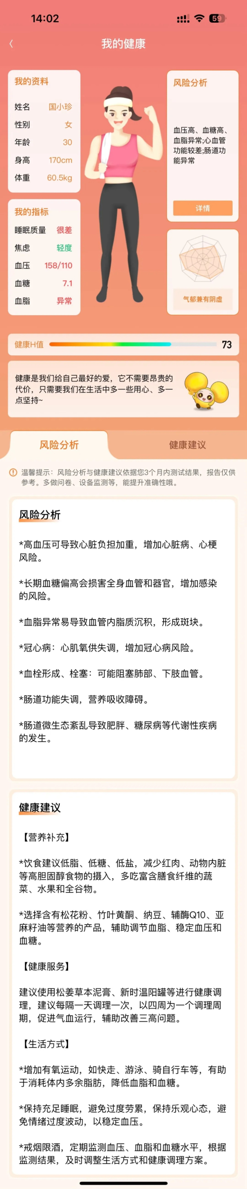 ![]() 【直报网北京2月10日讯】(新时代)“我做了很多健康监测设备 能不能给我一个综合的报告?” “根据自测问卷的结果 我该如何内养?” “我的体质适合什么样的外调方案?” ...... 您是否也有以上的疑问? 有什么健康问题,该怎么解决 2月10日上线的“我的健康”功能 ![]() 将基于您的个人资料,血压、血脂、血糖指标及健康设备监测报告 帮您一键定制专属健康方案 勾勒健康轮廓 ![]() 这里有我的资料、我的指标、我的体质、风险分析、健康H值、健康建议等板块,带您详细了解自身健康风险及改善建议,助您获得更好的健康生活。 打开国珍健康APP,完善个人资料,领取您的专属健康报告。在APP“测一测”功能中,填写体质问卷、睡眠焦虑情况,会让您的健康报告更加精准! 新的一年 快快携手周围的亲友 走进新时优品健康管理服务中心、社区站 体验专业的健康管理服务 收获专属的健康方案 种种贴心实用的功能 是不是让您心动不已? 还没下载的伙伴们 扫描下方二维码