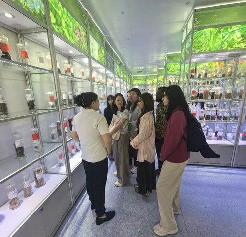 随后,留学生们参观了以岭药业的中药标本馆。标本馆内陈列着种类丰富、炮制精美的中药材标本,生动地展示了中药材的产地、性状、功效及加工炮制过程。留学生们纷纷表示,通过此次参观,对课堂上学到的中医药知识有了更加直观、深刻的理解,对中医药文化产生了更浓厚的学习热情。