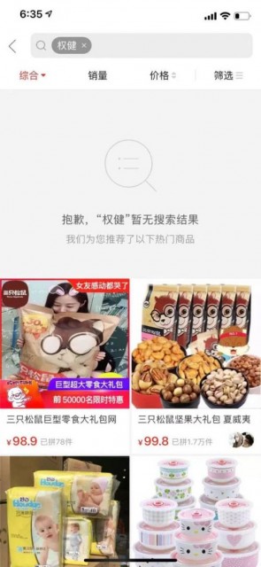 【直报网北京12月28日讯】(腾讯科技)针对权健事件,拼多多方面表示:“已经关注到权健事件引发的社会争议和网络舆情,为保护消费者权益,已先行屏蔽相关商品的搜索及露出,我们将密切关注市场监管机构对此事的调查结果。” ![]()